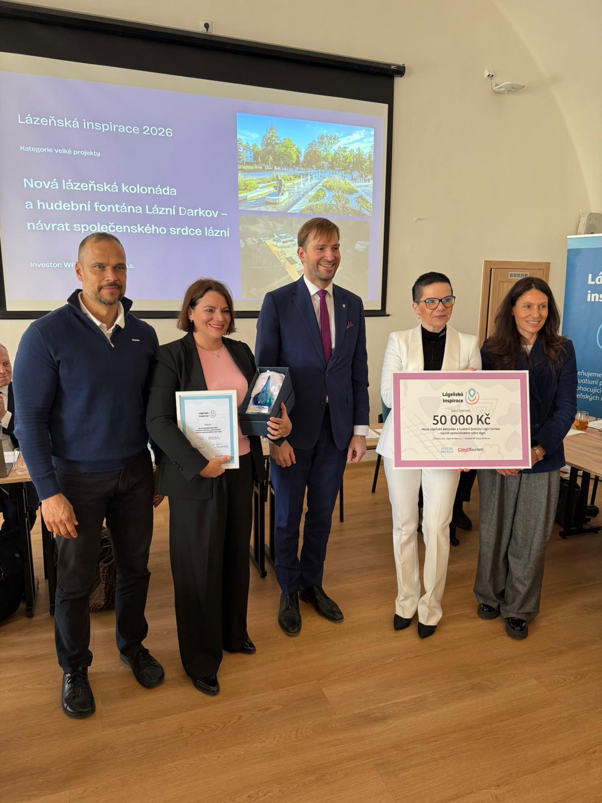 Karviná, 27. března 2026 – Lázně Darkov získaly hlavní cenu v prestižní anketě Lázeňská inspirace 2026 za projekt nové lázeňské kolonády a hudební fontány. Ocenění udělují agentura CzechTourism a Svaz lázeňských míst České republiky.